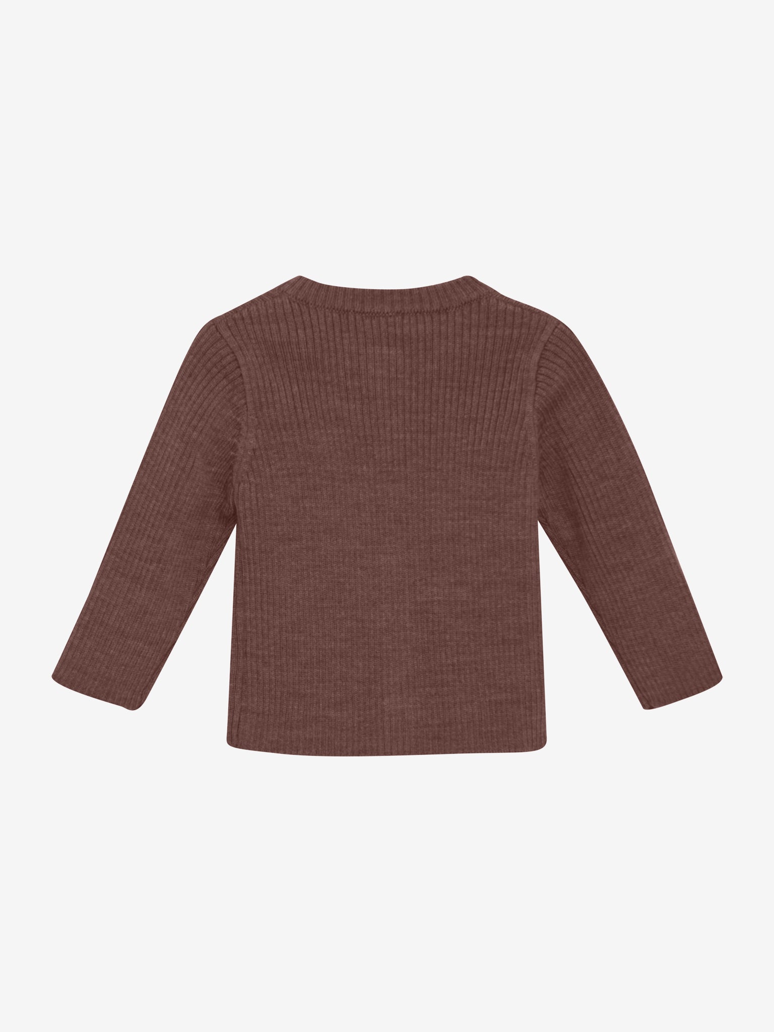 Diese braune Strickjacke aus 100 % Merinowolle von CeLaVi ist ein kuscheliger Begleiter für jeden Tag. Die weiche Wolle wärmt sanft, ohne zu kratzen, und die Knöpfe vorne machen das Anziehen kinderleicht. Schlicht, schön und wunderbar bequem – ideal für kleine Abenteurer:innen. Jetzt im Bärechind in Winterthur entdecken.