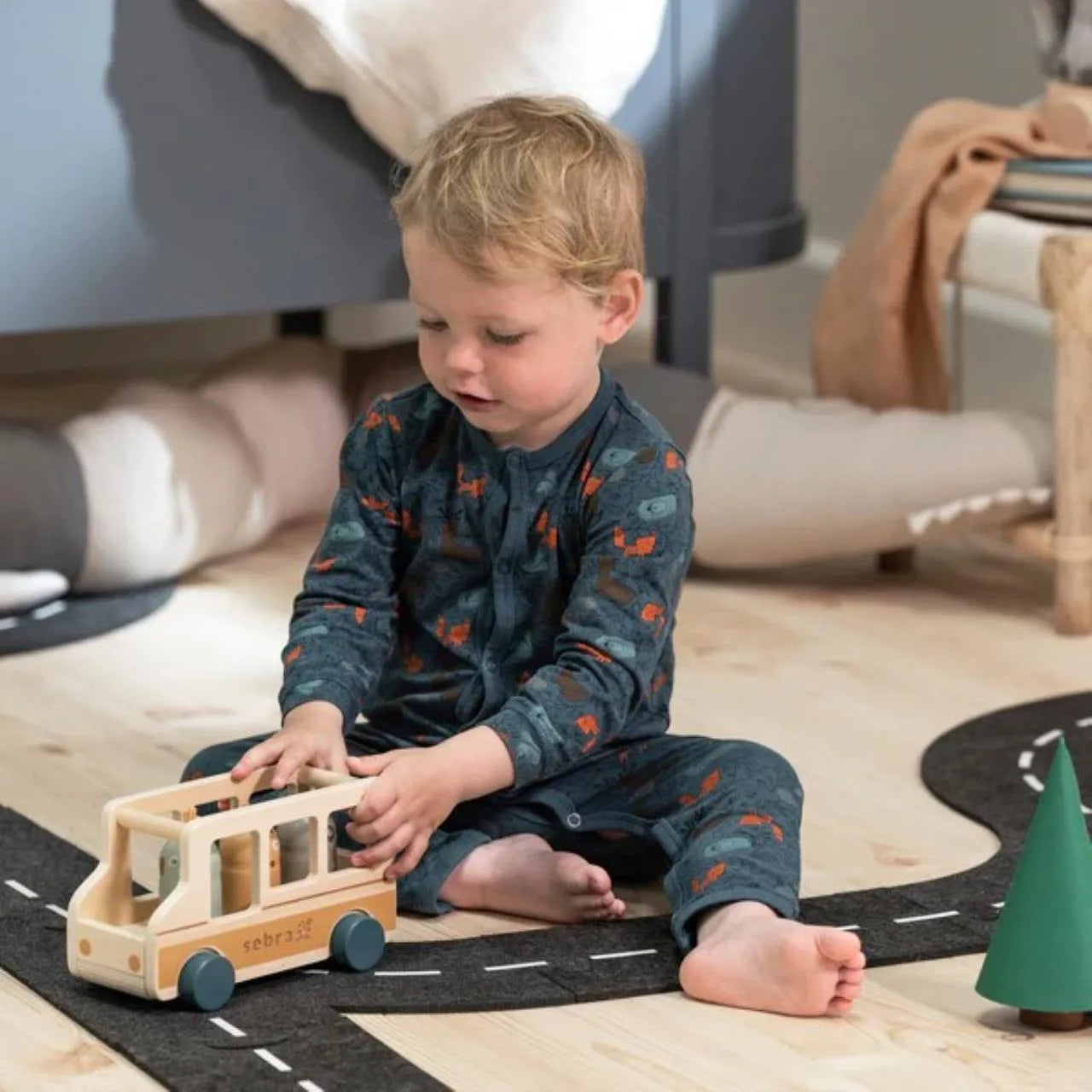 Der 20 cm lange Spielzeugbus eignet sich perfekt, um damit auf dem Boden zu krabbeln, wenn die Wildlife-Tiere einen Ausflug unternehmen. Das offene Design ist für kleine Kinderhände leicht zugänglich, und auch die Räder drehen sich leicht, sodass der Bus beim Spielen auch an Tempo zulegen kann.
