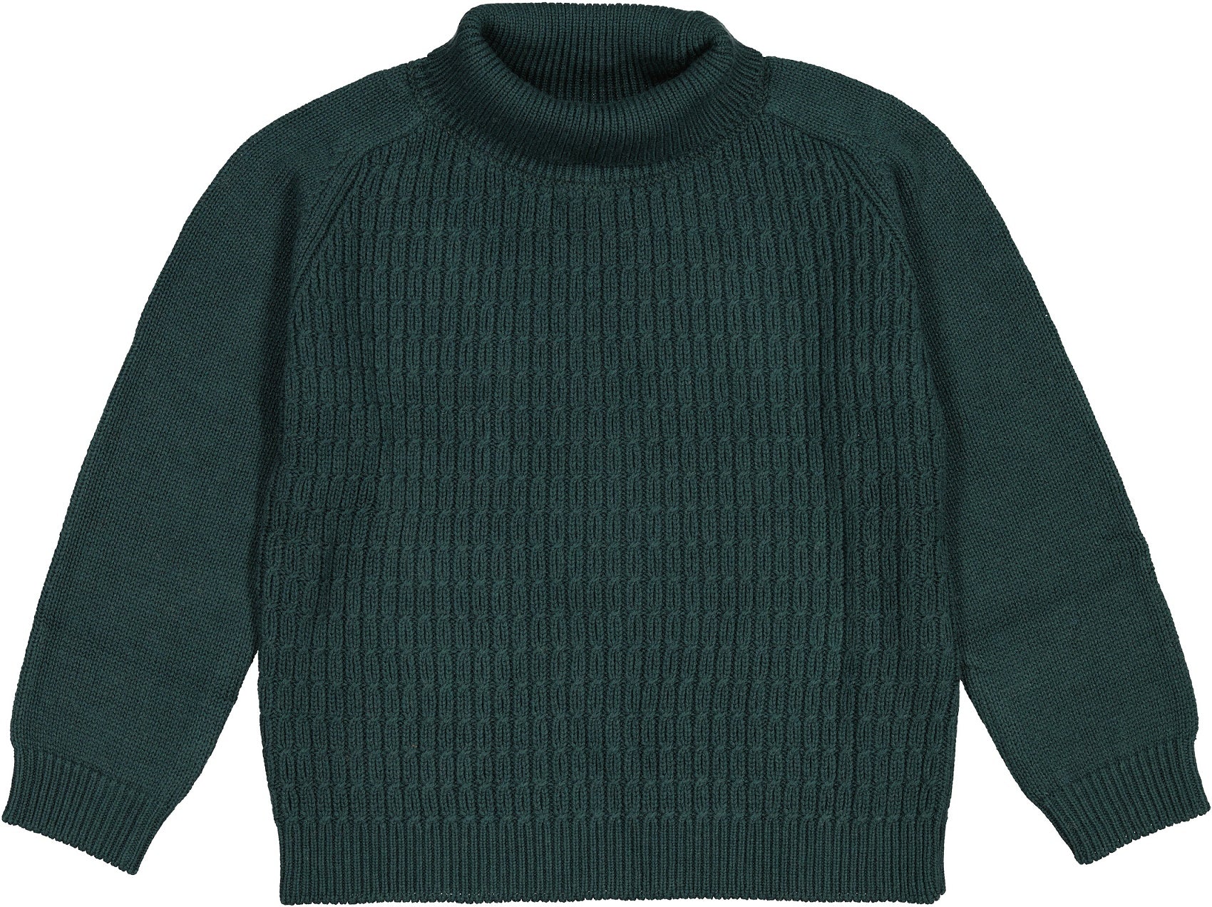 Gestrickter Kinderpullover mit Rollkragen und Raglanärmeln.